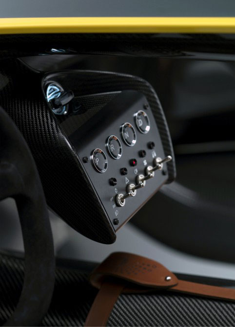 Este biplaza conjuga modernindad con toques clásicos, como pueden ser los tiradores de las puertas a través de cintas de cuero. Se ha utilizado fibra de carbono tanto para la carrocería como para el interior. Este vehículo deportivo es sinonimo de elegancia y velocidad, que trae la famosa carrera de 1959 al presente.