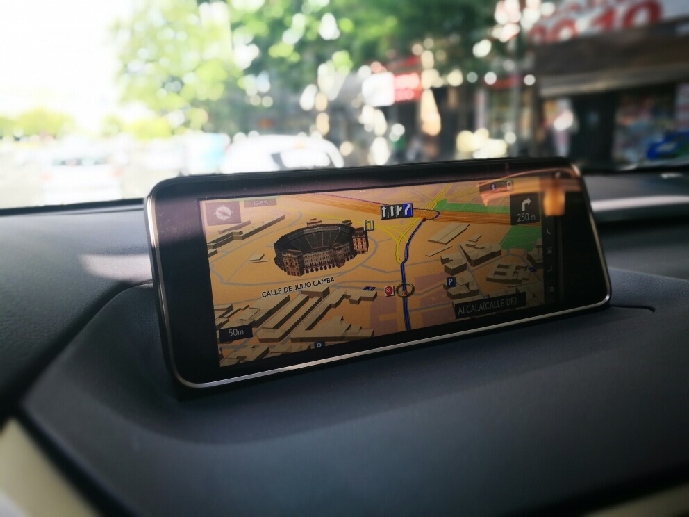 Los asientos de piel microperforada con calefacción y ventilación son perfectos. Tanto en diseño como en comodidad. De regulación eléctrica y fácil de encontrar la postura idónea. Los asientos del F sport proporcionan un refuerzo desde las caderas hasta los hombros y en el trazado de curvas aporta una perfecta sujeción. Los magníficos detalles de bordados a mano han corrido a cargo de los maestros artesanos llamados “takumi”. Desde esta posición su HUD (Head Up Display), proyectada en el cristal delantero, es de muy buena calidad. Información completa y con una visual de las mejores que he visto.
