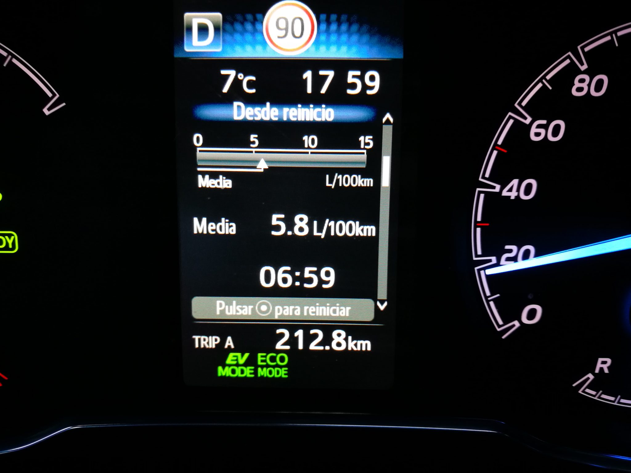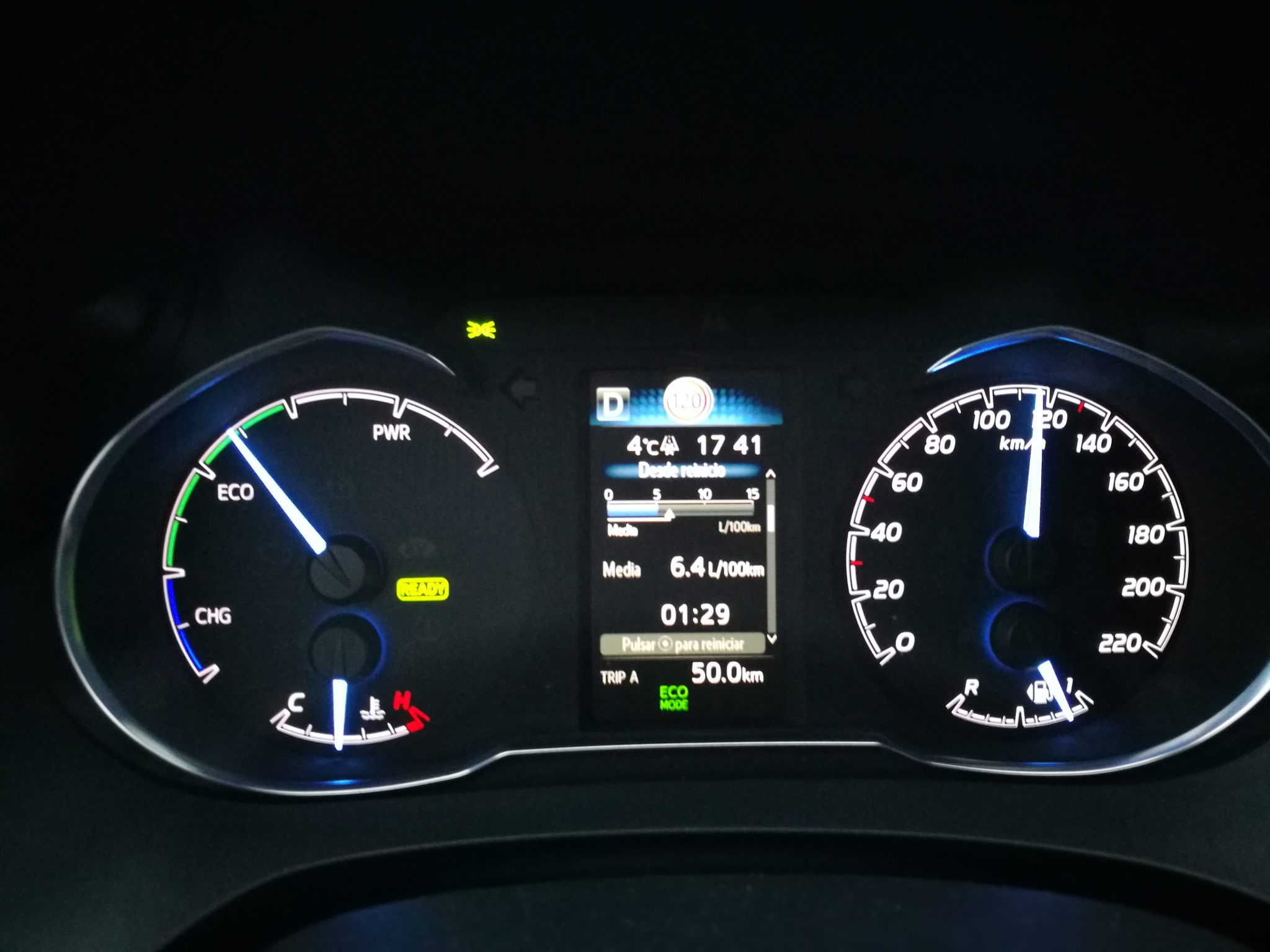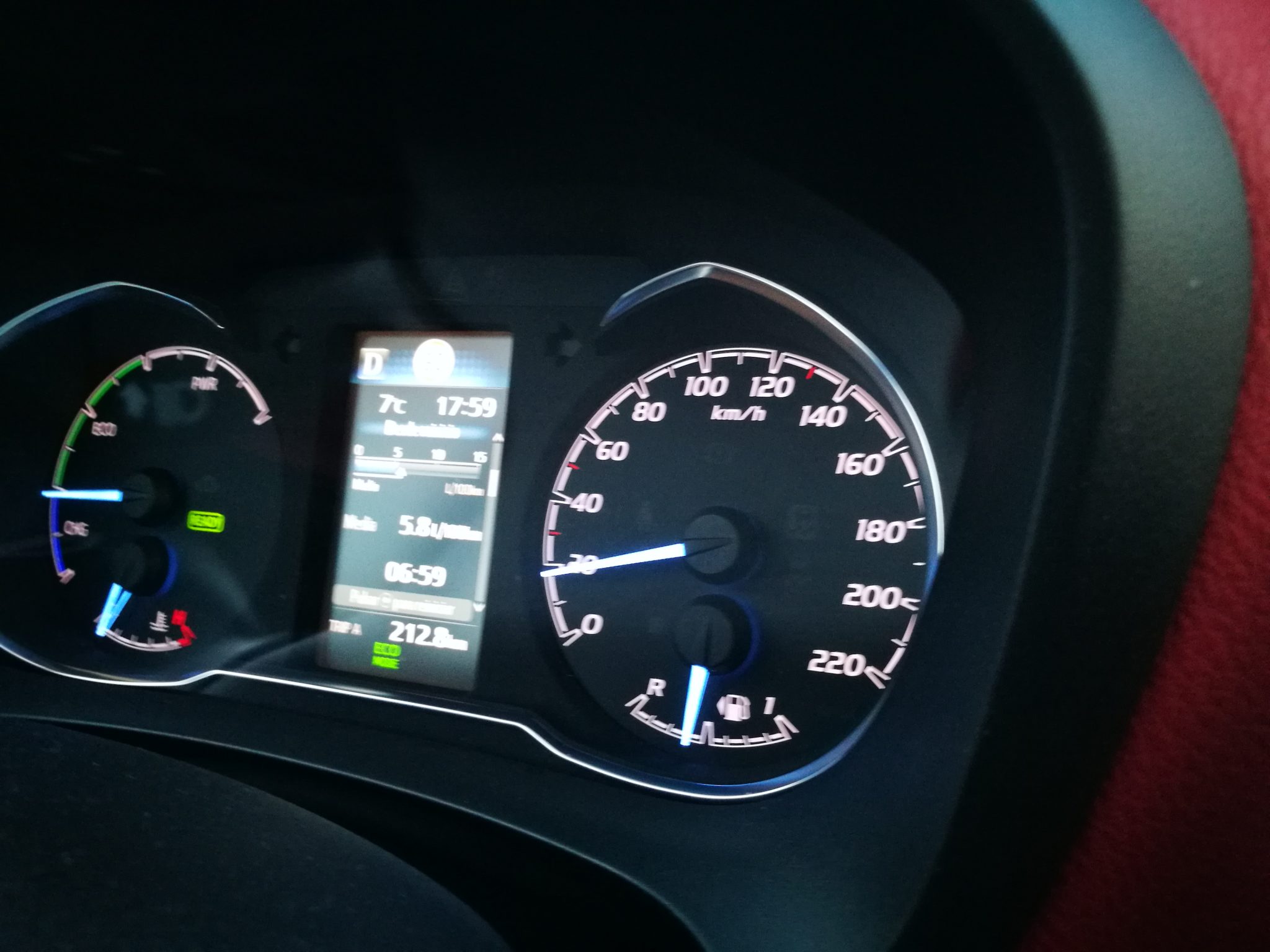 Hablando del consumo oficial, en este caso no hemos sido capaces de conseguir acercarnos al datos mencionado anteriormente, pero si hemos conseguido unos 4.8l a los/100km dignos de una conducción real (urbano y extra urbano) y sin estar midiendo la conducción eficiente. Toyota en todos sus modelos híbridos trabaja con un conjunto de motor térmico (el motor de toda la vida), con el motor eléctrico donde la combinación de ambos hace que ayuden a contaminar menos (principalmente en ciudad), ahorre combustible y baje los niveles de ruido. En los diferentes modelos de la marca, Auris, Avensis, Yaris, etc… Tienen una velocidad máxima hasta donde se puede apurar el motor eléctrico. En el caso del Yaris es de 30km/h, eso significa que en una conducción urbana donde las baterías están cargadas al 100% podrás circular en modo eléctrico hasta dicha velocidad. A partir de 30km/h se anula el modo eléctrico entrando en funcionamiento el motor térmico.