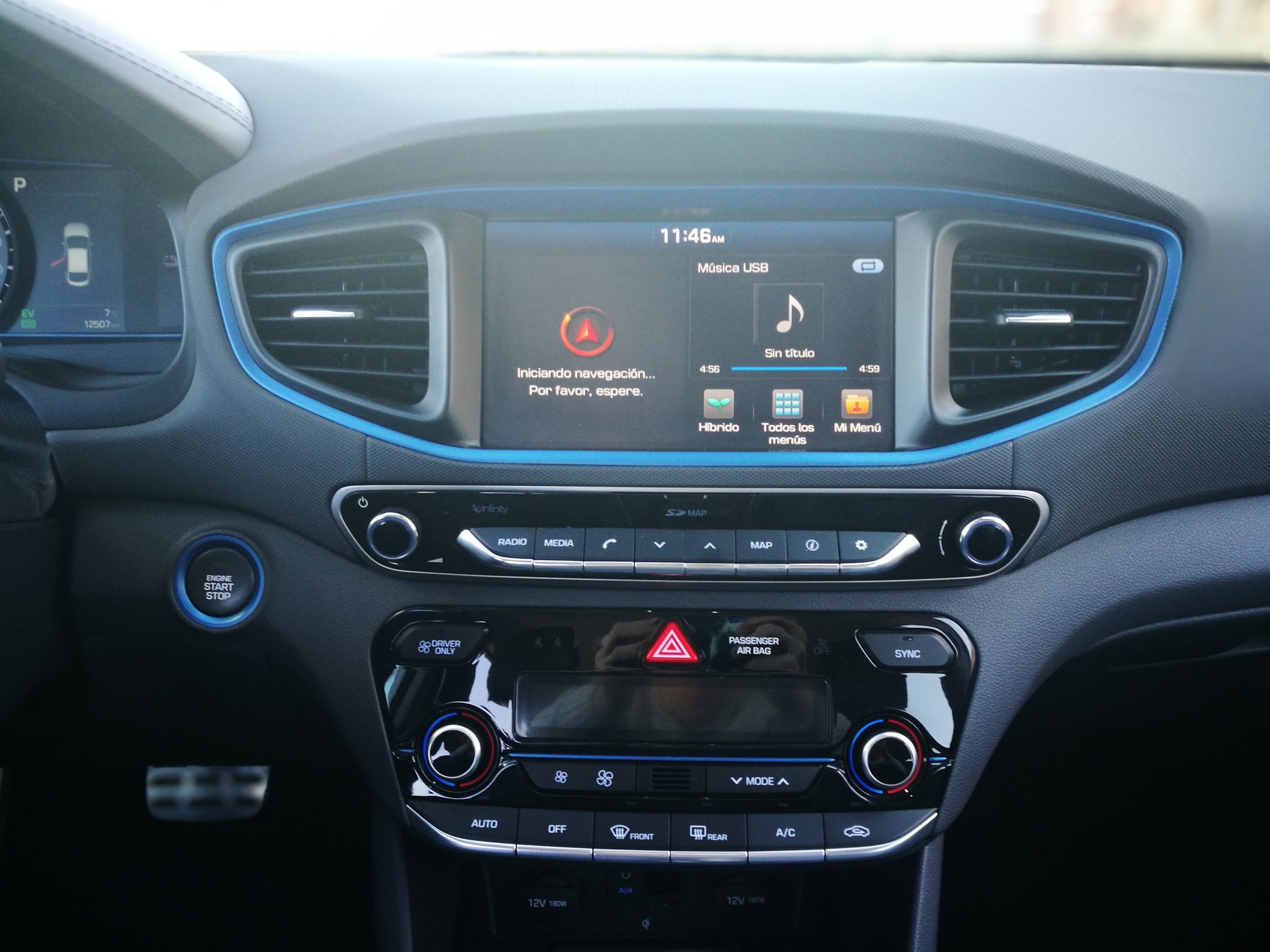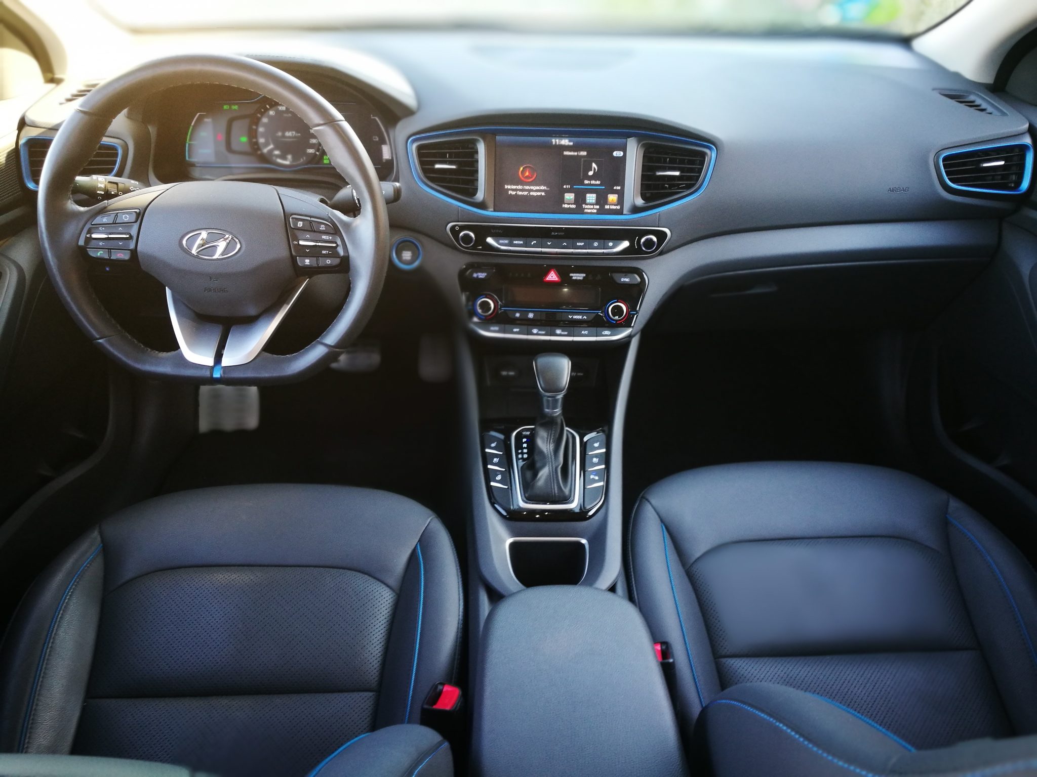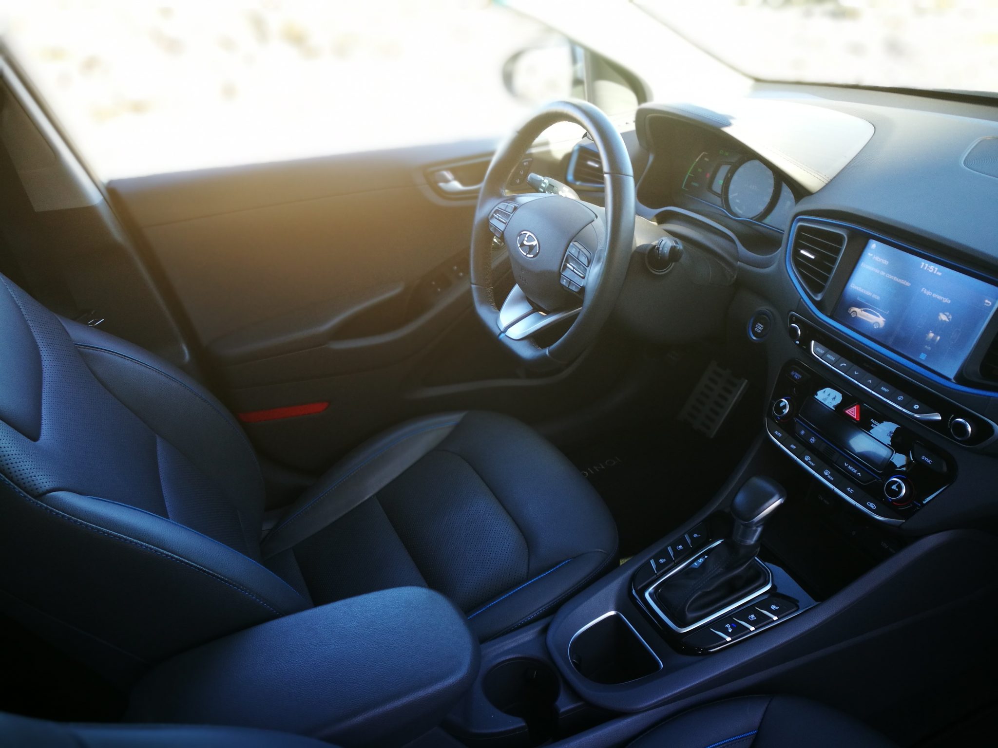 En el Ioniq encontramos todo a nuestro alcance, desde los mandos climatizador, radio, botones de la calefacción y ventilación de los asientos hasta el botón de la calefacción del volante, estos dos últimos solamente disponibles en el acabado Style.