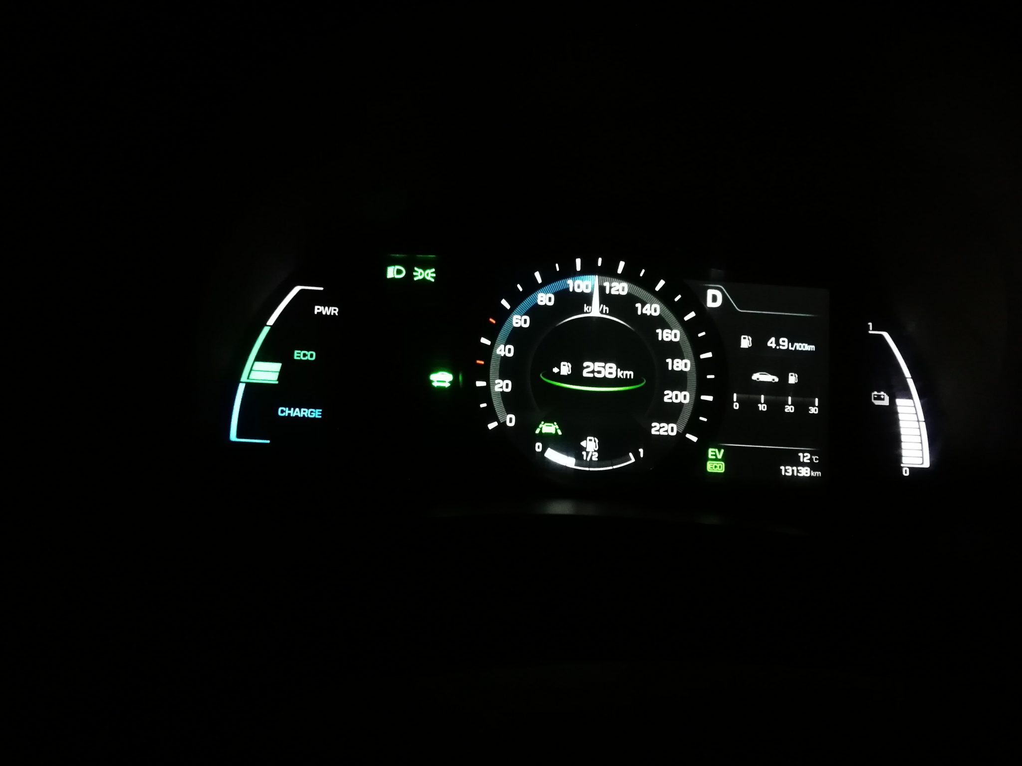 Tenemos que destacar que es capaz de circular en modo eléctrico mayor tiempo que el Prius y que podemos alcanzar hasta los 120Km/h sin necesidad de usas el motor de combustión. Nos hubiera gustado disponer de un botón para poder forzar el modo 100% EV, pero no es posible en este modelo, cosa que si es posible activa en su rival.