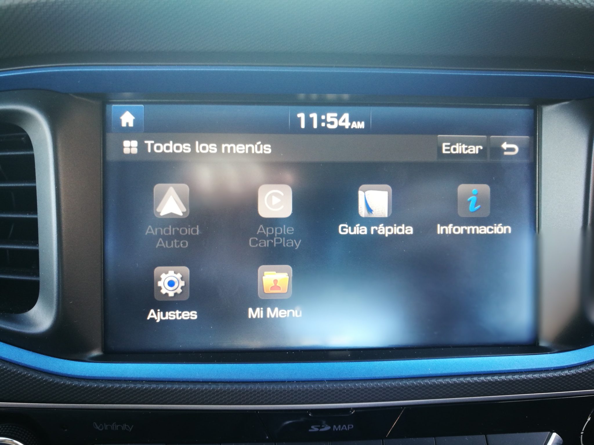 Respecto al apartado tecnológico, nos encontramos con una pantalla de 8″ táctil con Navegador y una resolución buenísima. Tiene un táctil bastante logrado y de manejo intuitivo. Además, ofrece conectividad Apple Car o Android Auto. Destacamos el nivel sonoro del conjunto, ya que el sistema de altavoces está firmado por Infinity. Dispone de varias tomas USB, 12V y carga inalámbrica.