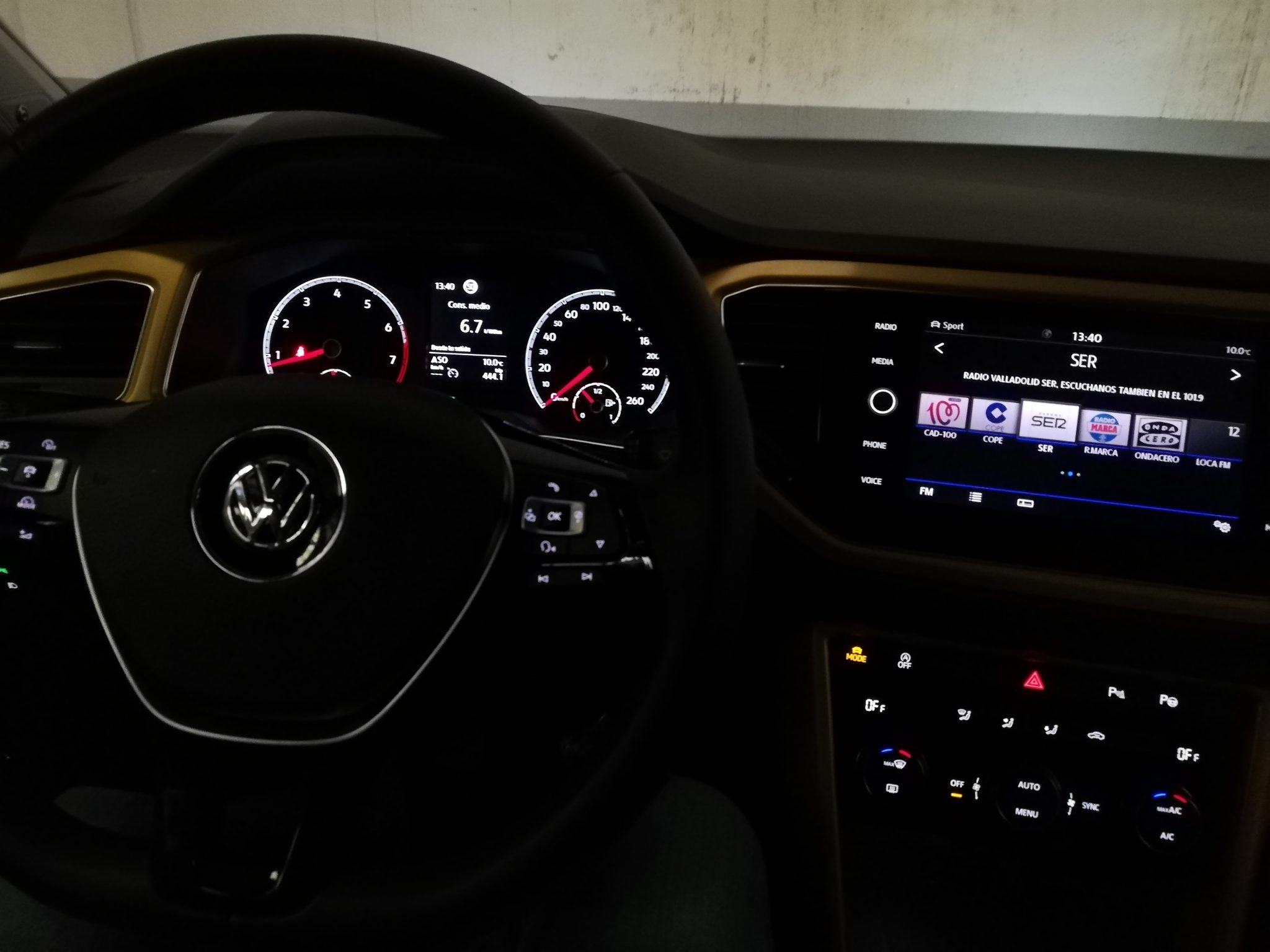 Vista nocturna interior Volkswagen T-Roc