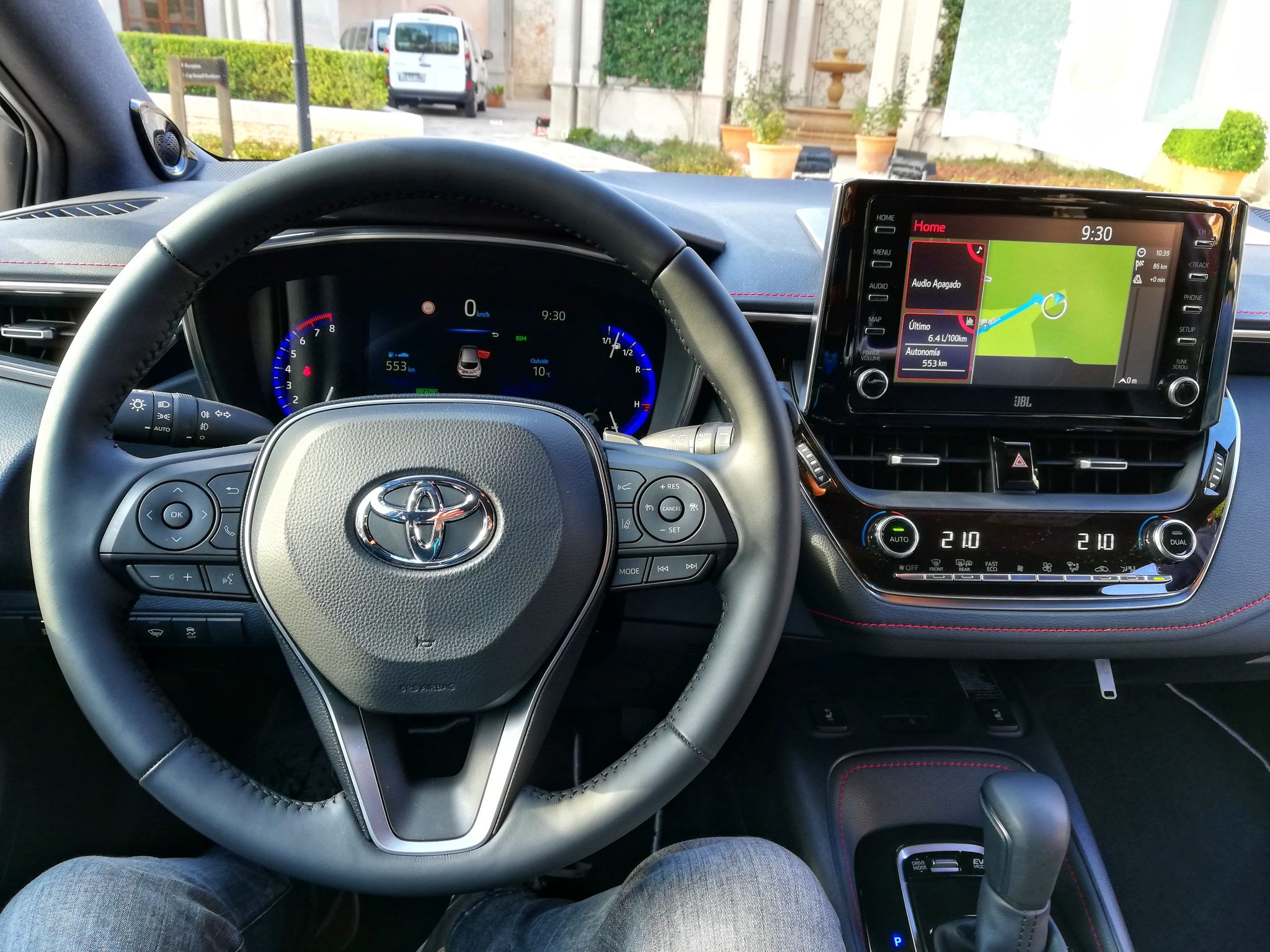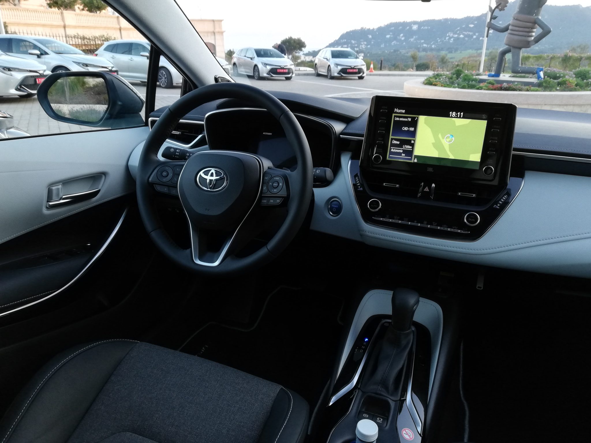 Lo que más llama la atención del interior del nuevo Corolla son los acabados y el diseño. Tiene un diseño limpio y futurista a la vez y además con la ergonomía muy cuidada, algo que podemos notar al ver que los mandos del clima siguen siendo físicos, la pantalla queda perfectamente situada a la vista o que por ejemplo cuenta con botones de acceso directo a la pantalla, algo que ya sabéis que nos encanta.