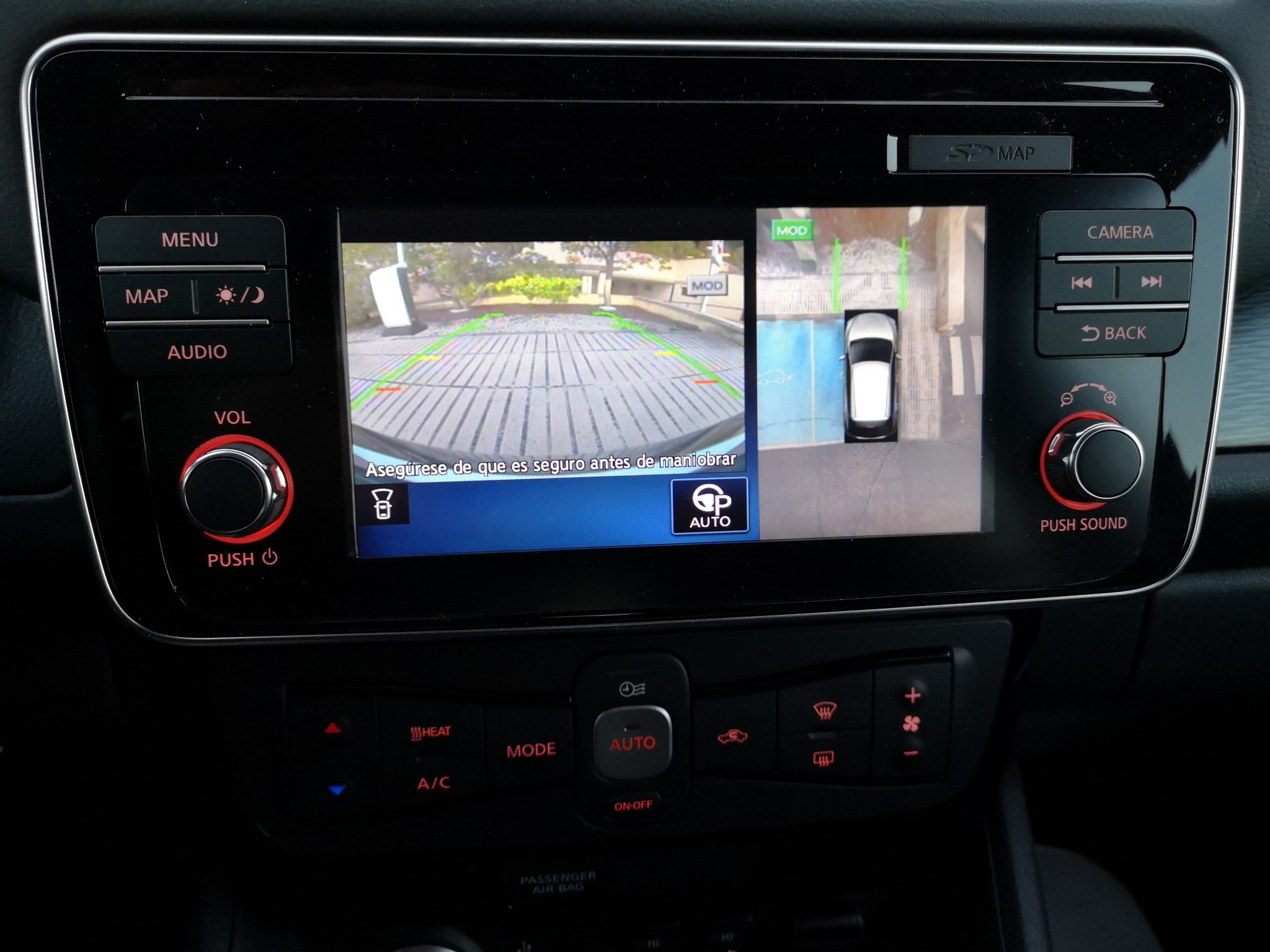 El sistema ProPilot brinda al Leaf de una conducción semi autónoma de nivel 2, o lo que es lo mismo, a partir de 30 Km/h hasta los 100Km/h el Leaf es capaz de “navegar” entre el tráfico de forma autónoma. El sistema frena, te mantiene en el carril, acelera automáticamente y hasta ayuda en los giros rápidos gracias a los radares y los sensores de los que está dotado. Sin duda es un sistema comodísimo en autovía. Además es capaz de aparcar al Leaf automáticamente. Tan solo tenemos que buscar hueco y él hará el resto. Además cuenta con sistema de detección de peatones y obstáculos, detector de ángulo muerto, etc.
