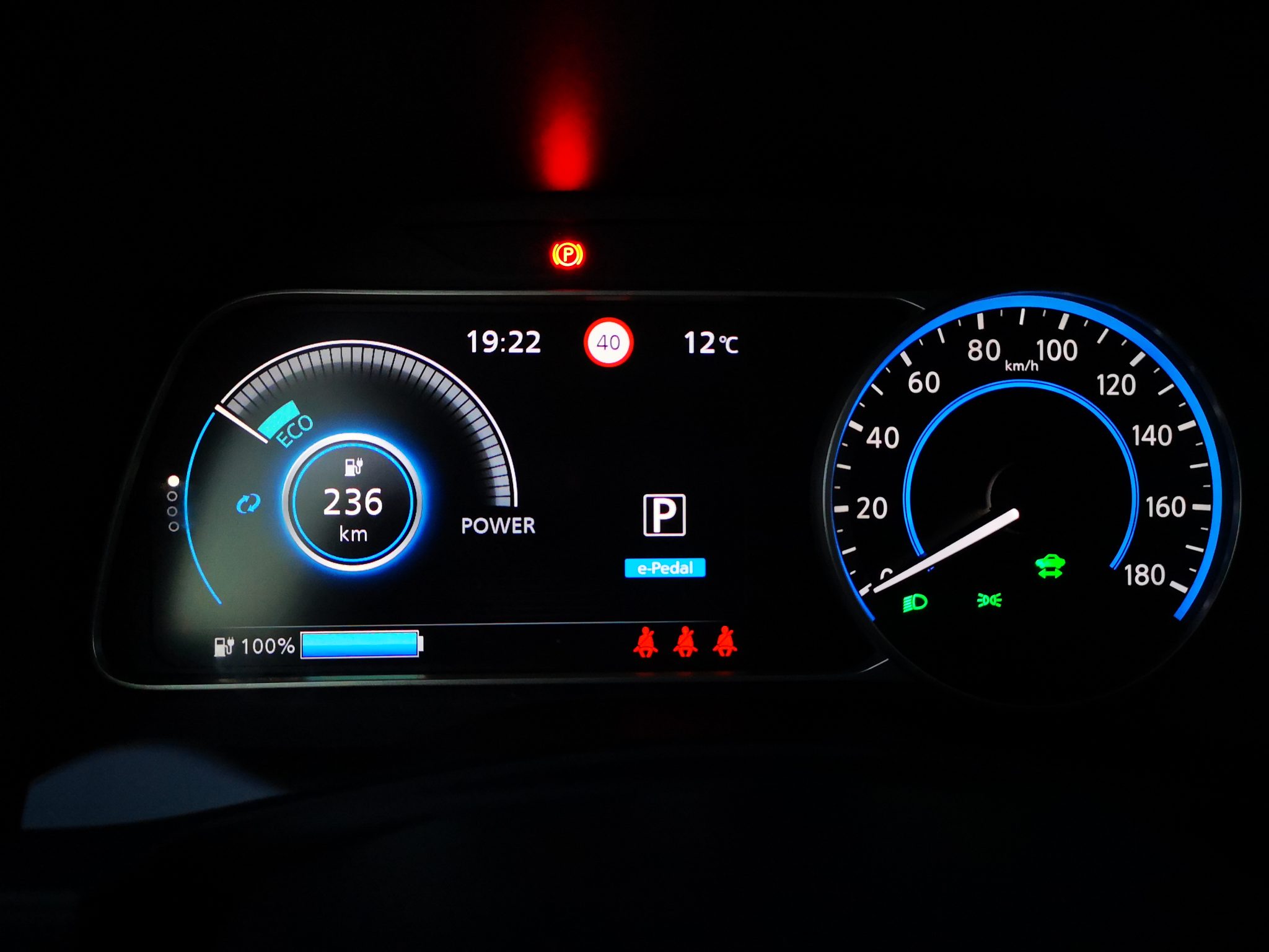Por otro lado, el otro elemento a destacar es el e-Pedal. El sistema hace que podamos conducir el Leaf usando un solo pedal, el del acelerador. Para que os hagáis una idea, es parecido al pedal de las carretillas de los almacenes. Con el e-Pedal activo, si levantamos el pie del acelerador el coche retiene en función de la presión que dejemos de ejercer. Si levantamos el pie por completo o rápidamente, el Leaf será capaz de hacer una retención bastante grande de incluso hasta 0,2G, lo que obliga a que la luz de freno se encienda para avisar al resto de vehículos.