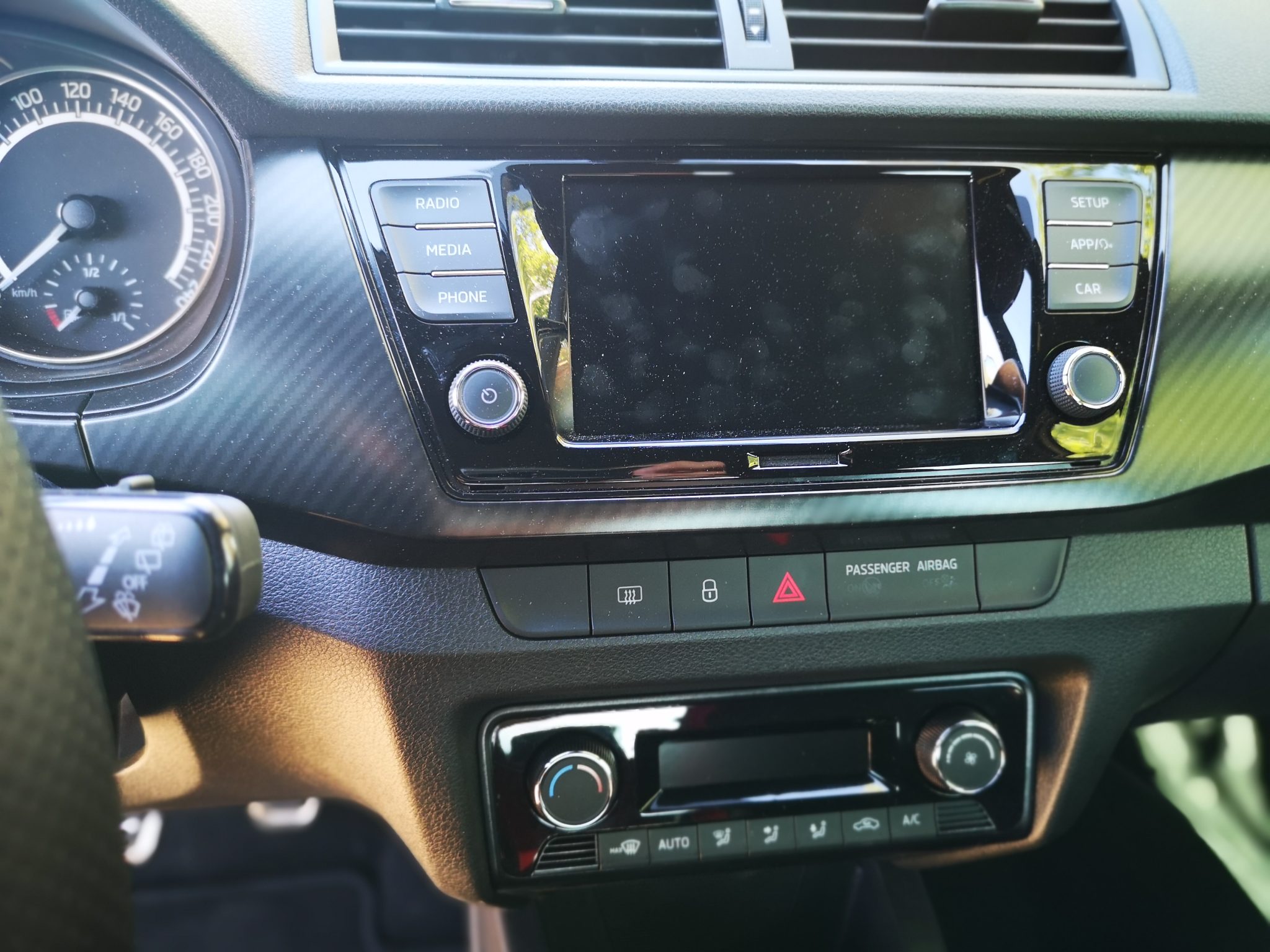 Otro de los puntos que varía y que consideramos todo un acierto es el hueco porta objeto bajo la consola central. Suprime el color rojo que tenía para fusionarse en el mismo color que el resto del salpicadero, que, por cierto, también ha dejado el símil carbono brillante que usaba en ciertas partes, a cambio de usar piezas mates. Estos cambios, que, a priori parecen que no son nada, hacen que visualmente el Fabia MonteCarlo 2019 parezca algo más formal y, a nuestro criterio, gana mucho.
