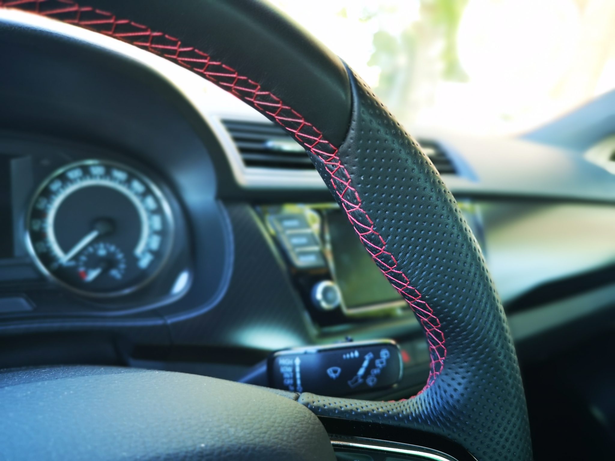 En el interior varía la elección de tapicerías, que, aunque sigue destacando con un atrevido color rojo, ahora goza de partes con nuevas texturas y colores. Reemplaza las partes grises claros con un símil efecto carbono en las sujecciones lumbares, por ejemplo. Lo malo es que este material transpira algo peor que la tela y enseguida comienzas a sudar un poco por esas zonas ( también es verdad que la tempera ambiente que había era de casi 35 grados).