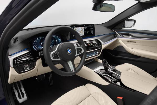La pantalla de control de serie, de 12,3 pulgadas, los mandos de la consola central rediseñados y el deportivo volante de cuero de serie con botones multifunción con nueva disposición encabezan un interior repleto de refinados detalles. El equipamiento de serie para los nuevos BMW Serie 5 Berlina y BMW Serie 5 Touring ahora también incluye climatizador automático con funciones añadidas.