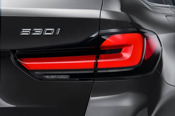 Los bordes negros y una nueva firma en forma de L otorgan a los pilotos traseros del nuevo BMW Serie 5 un impacto visual adicional. Las luces traseras y de freno están integradas en un módulo compartido, que ahora forma una sola unidad con la lente externa prominentemente tridimensional. Independientemente de la línea de equipamiento y el motor, todas las versiones de la nueva Serie 5 de BMW cuentan con terminaciones trapezoidales para las colas de escape.