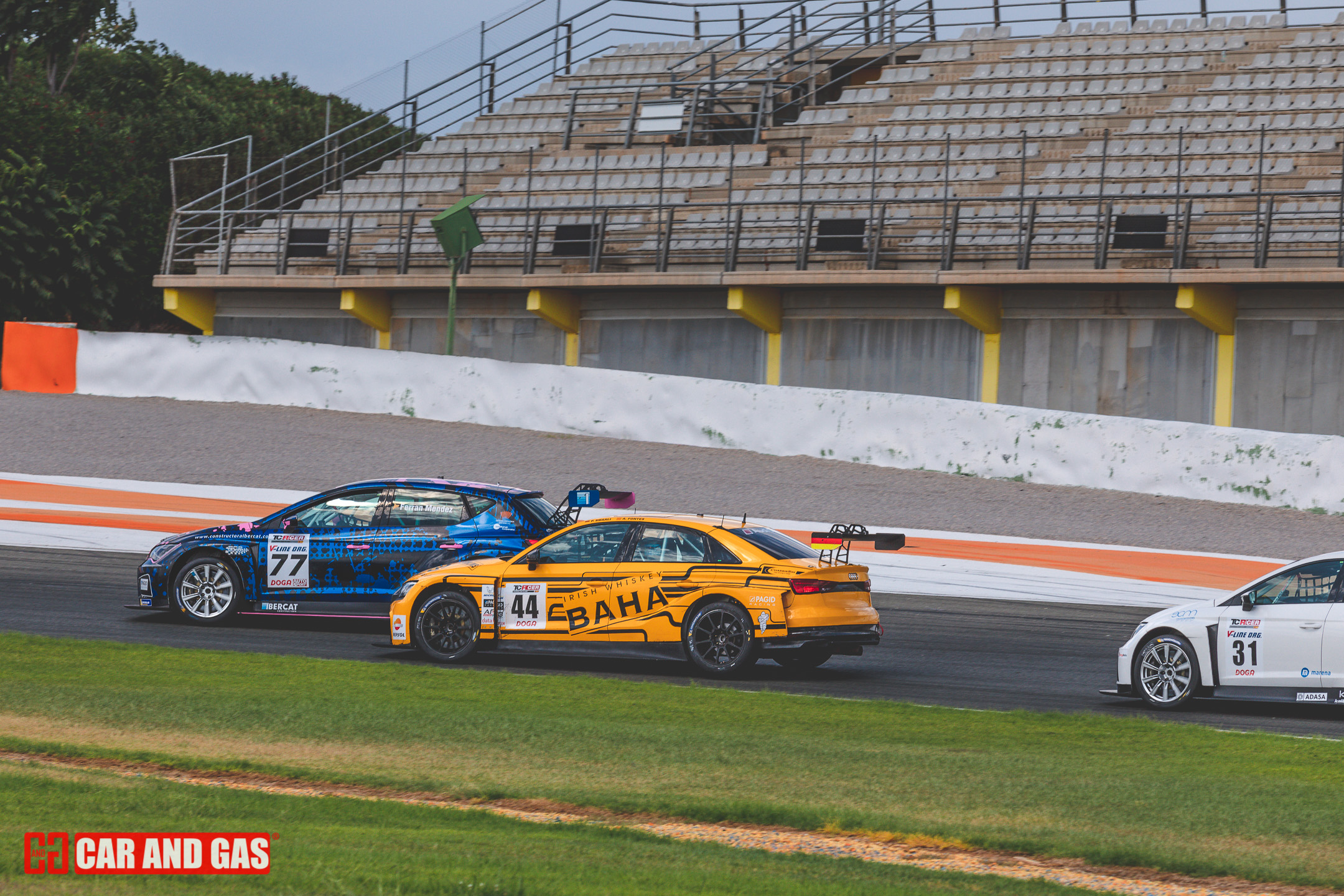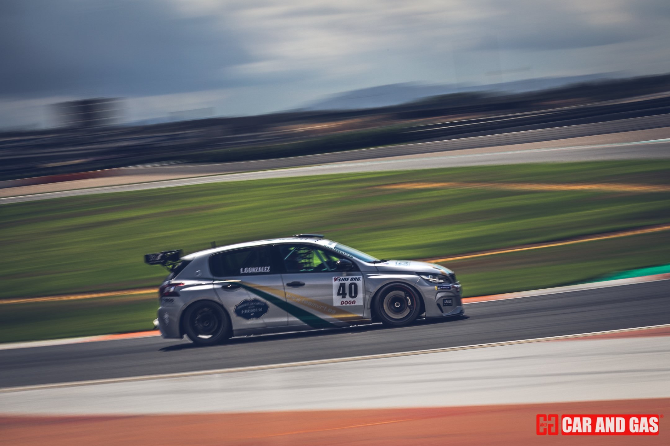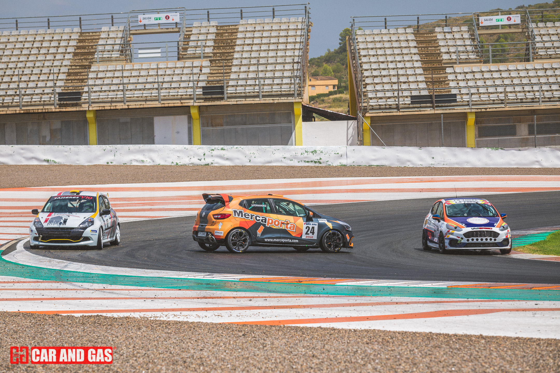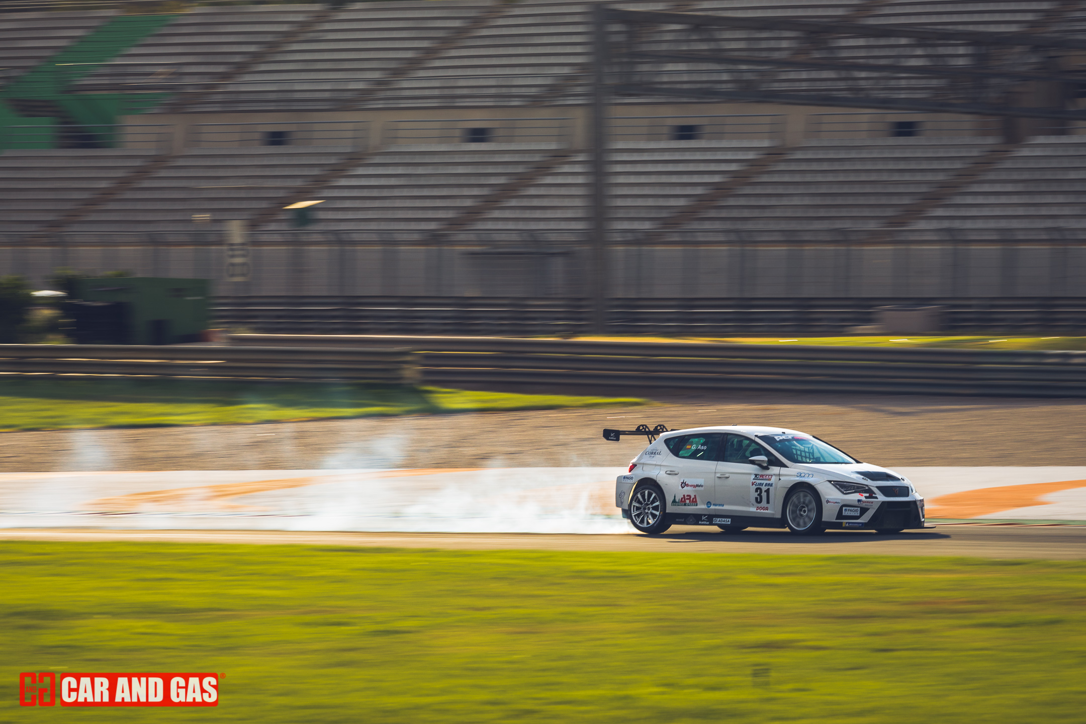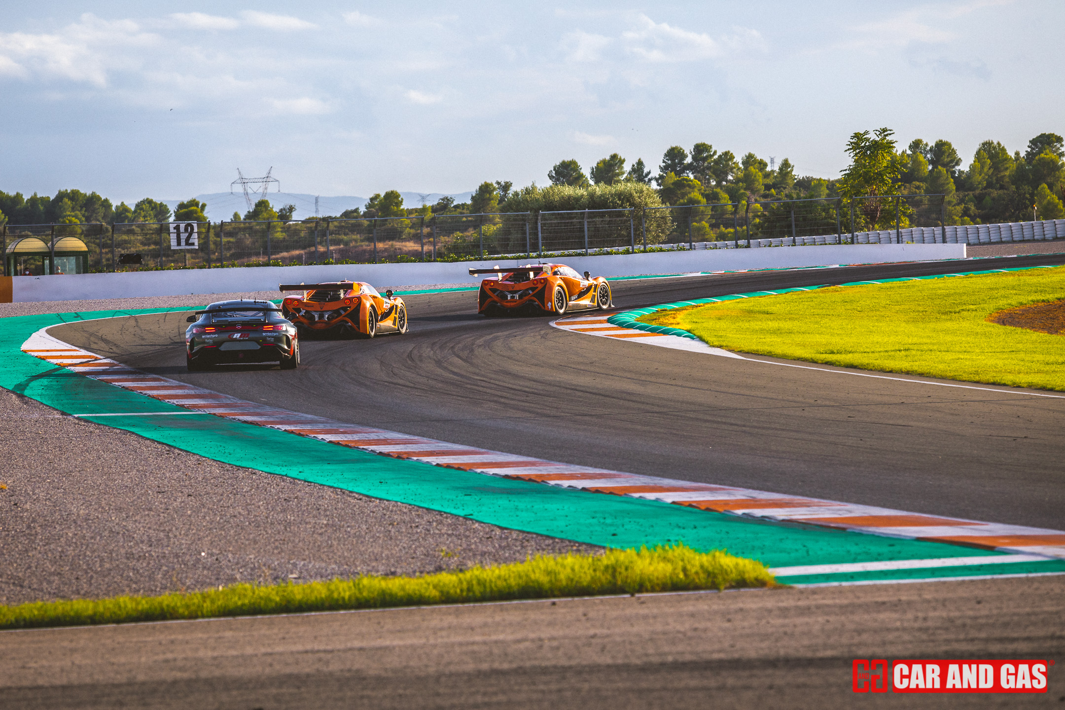 Con la primera bandera verde daba inicio todo formato del día. Con la tribuna principal vacía, el paddock más gris que se recuerda en el circuito y un sol que parecía faltar a la cita también. Una climatología variada, típica de las tardes de agosto en Valencia. Justo lo perfecto para jugar con las sombras y colores, buscando esas fotos para la revista. Metidos ya en la pista, el atrayente eran los GT, compartiendo pista con los TCR. Sonido sensación de velocidad son notorios frente a las demás categorías que acompañan el día. De entre ellos hubo un dominador, el Ferrari 458 de Gutiérrez y Mayola. Tuvo buenas peleas con los Porsche GT3, pero se había mostrado fuerte y no iba a dejar escapar las dos victorias del día.