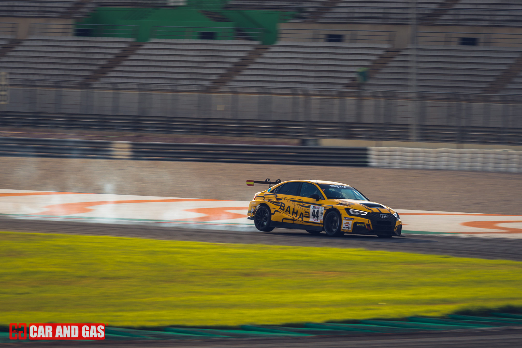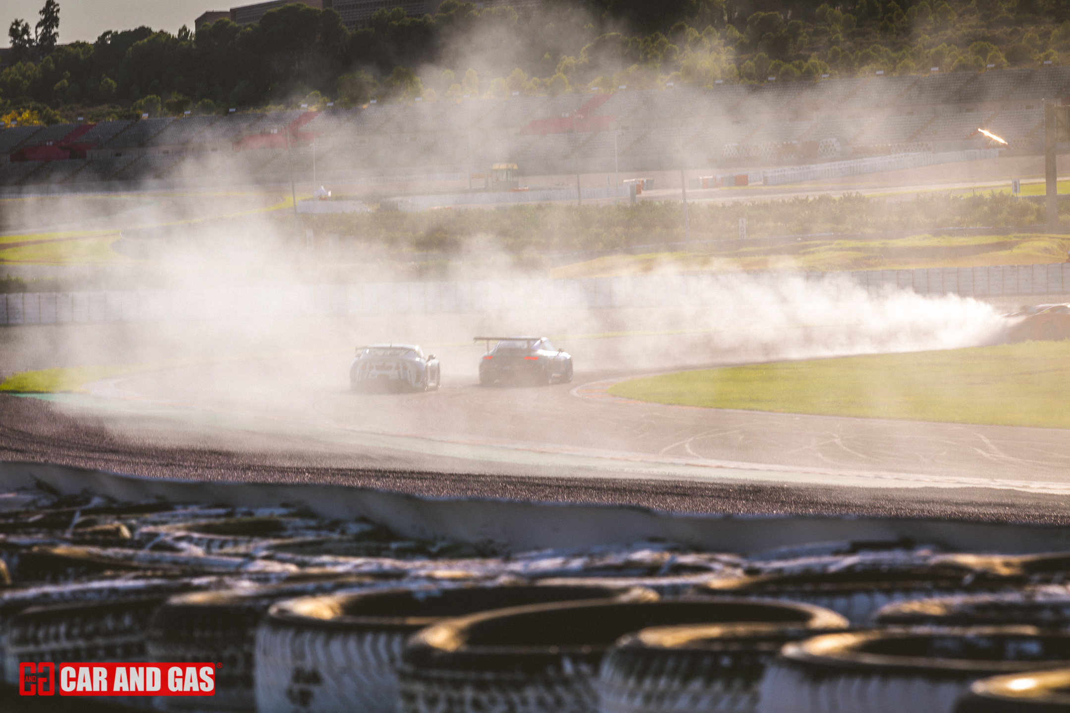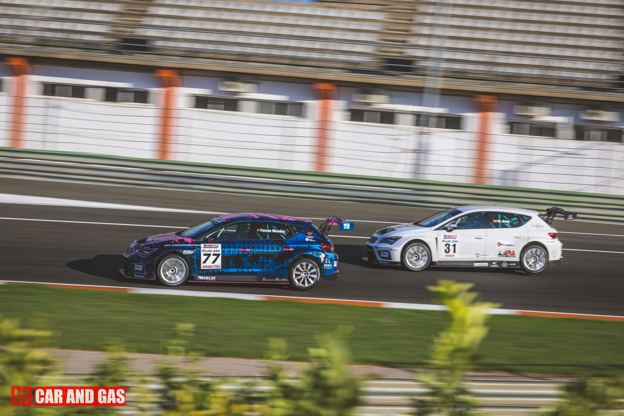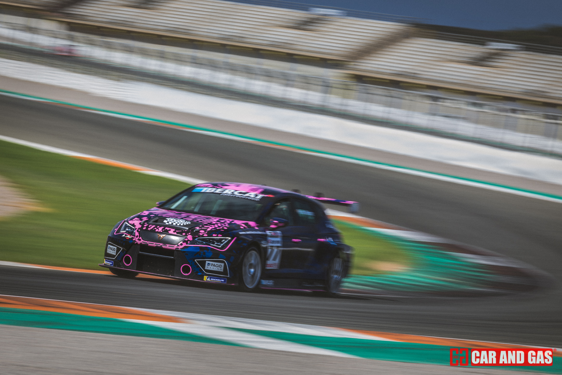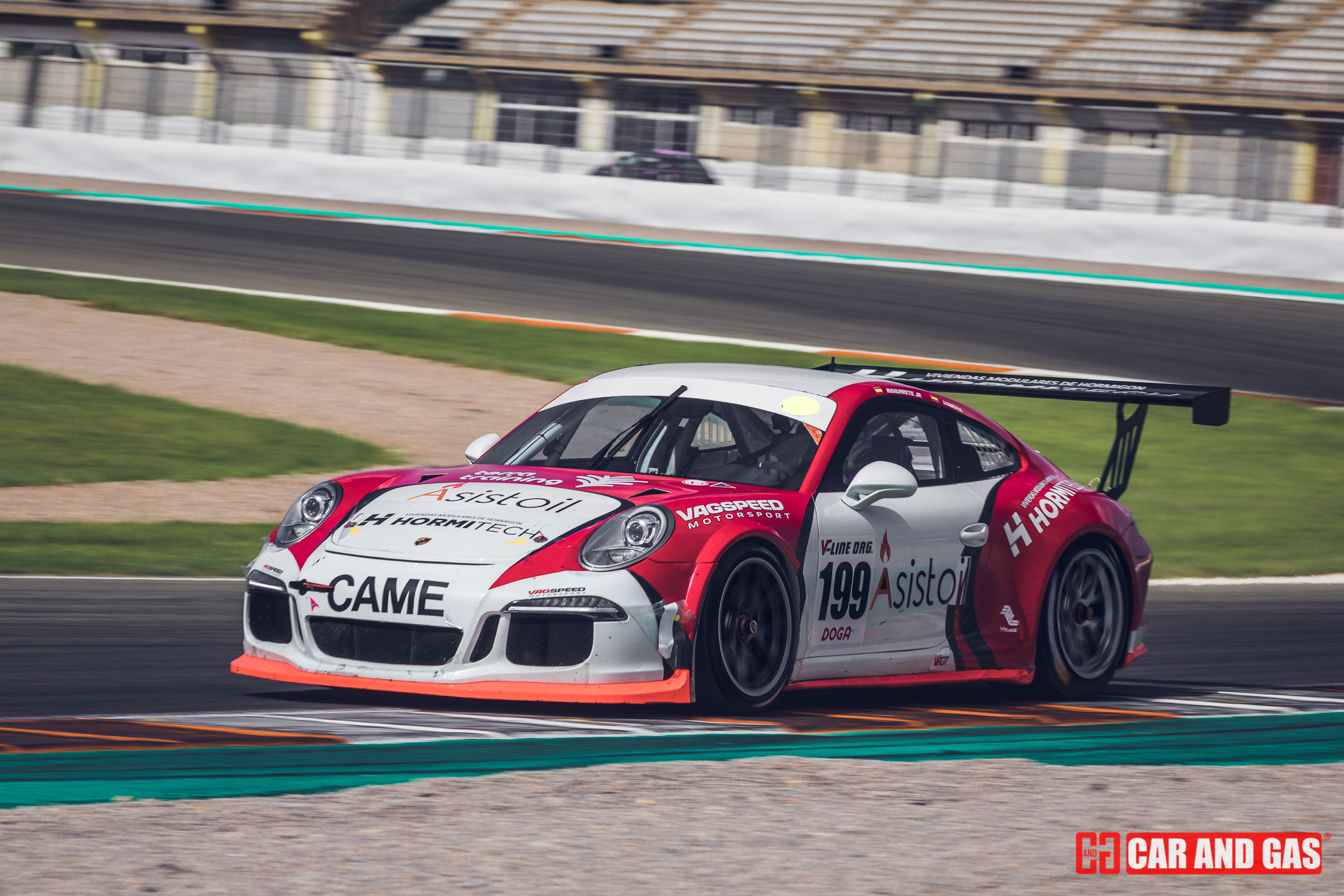 Con la primera bandera verde daba inicio todo formato del día. Con la tribuna principal vacía, el paddock más gris que se recuerda en el circuito y un sol que parecía faltar a la cita también. Una climatología variada, típica de las tardes de agosto en Valencia. Justo lo perfecto para jugar con las sombras y colores, buscando esas fotos para la revista. Metidos ya en la pista, el atrayente eran los GT, compartiendo pista con los TCR. Sonido sensación de velocidad son notorios frente a las demás categorías que acompañan el día. De entre ellos hubo un dominador, el Ferrari 458 de Gutiérrez y Mayola. Tuvo buenas peleas con los Porsche GT3, pero se había mostrado fuerte y no iba a dejar escapar las dos victorias del día.