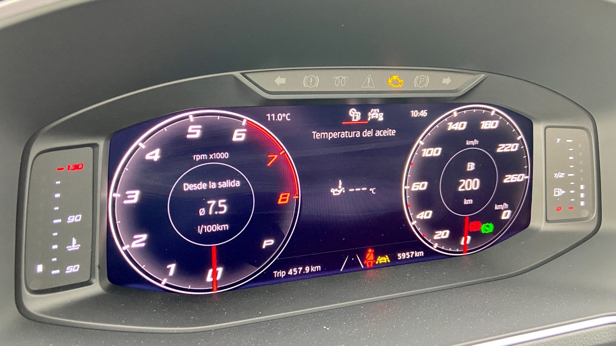 Uno de los puntos positivos de este Tarraco FR es que de serie ya incluye: cámara de marcha atrás, asistente de frenada con detección de peatones, climatizador de 3 zonas, asistente de carril, digital cockpit y faros full led.