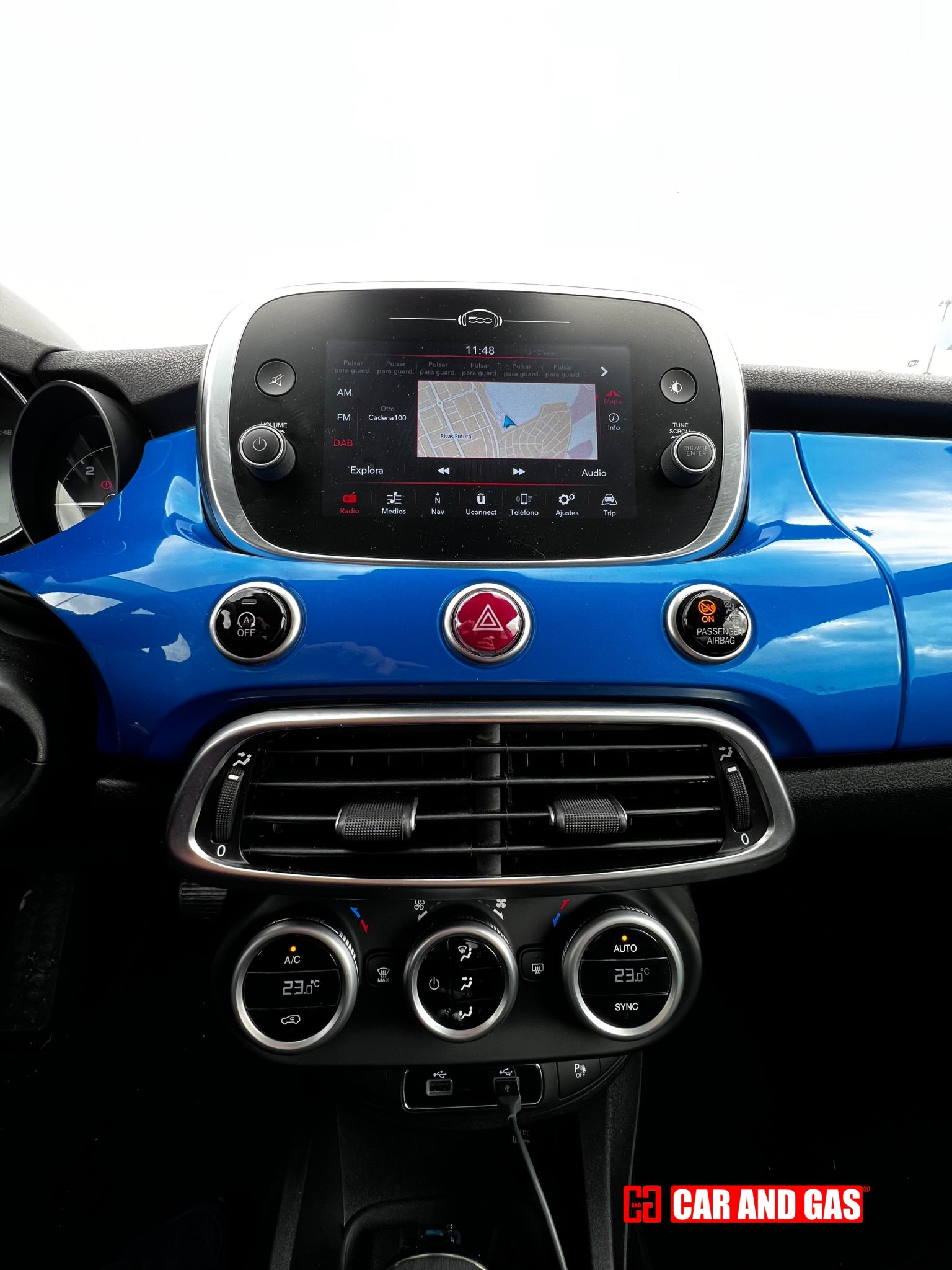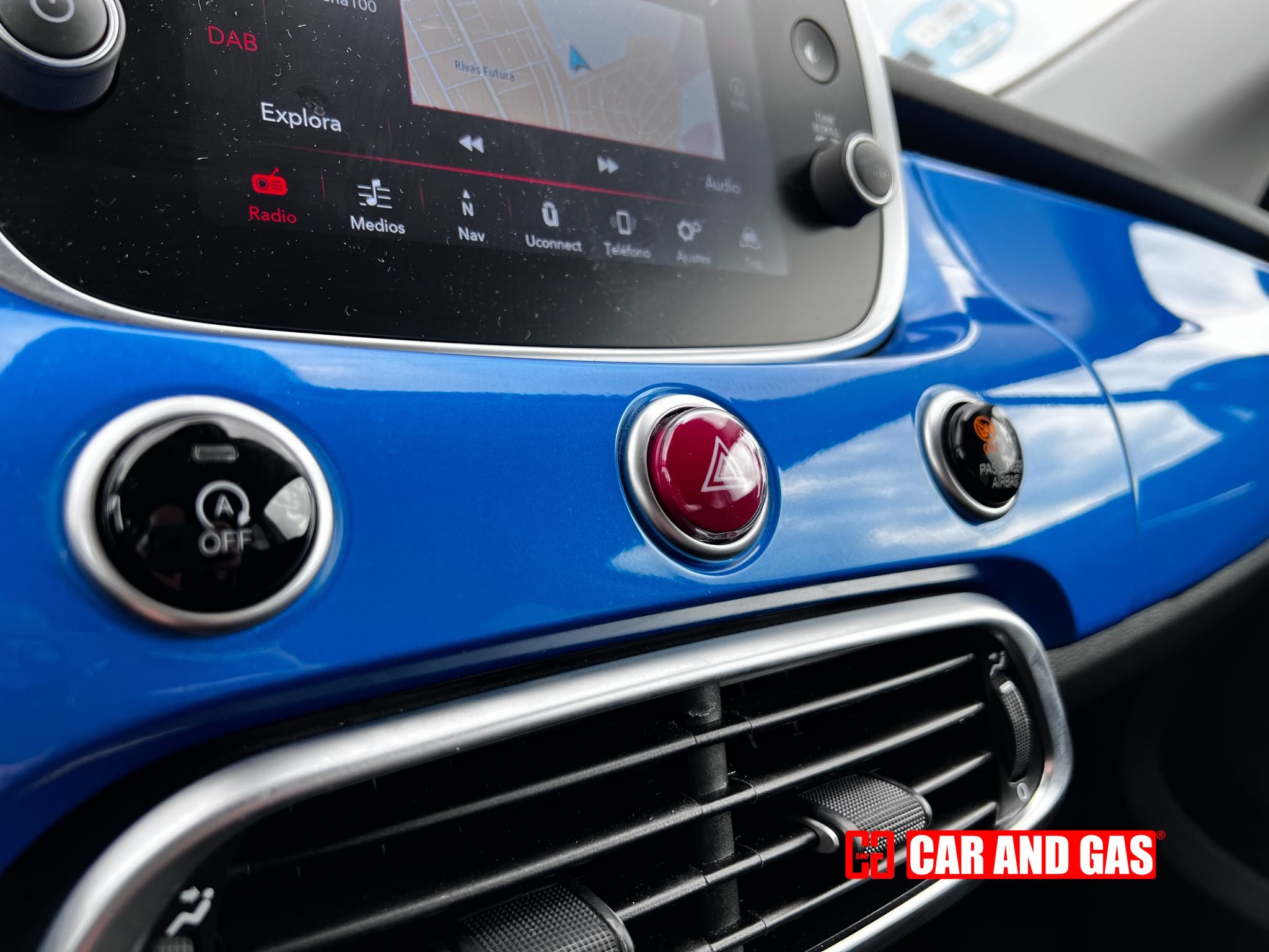 Empezando por el salpicadero, en el mismo color de la carrocería (Azul Italia), que queda muy resultón, pero tengo una mala noticia: si nos vamos al configurador veremos que ya no existe esa opción, por lo que si te gusta tendrás que rebuscar en el mercado de segunda mano.