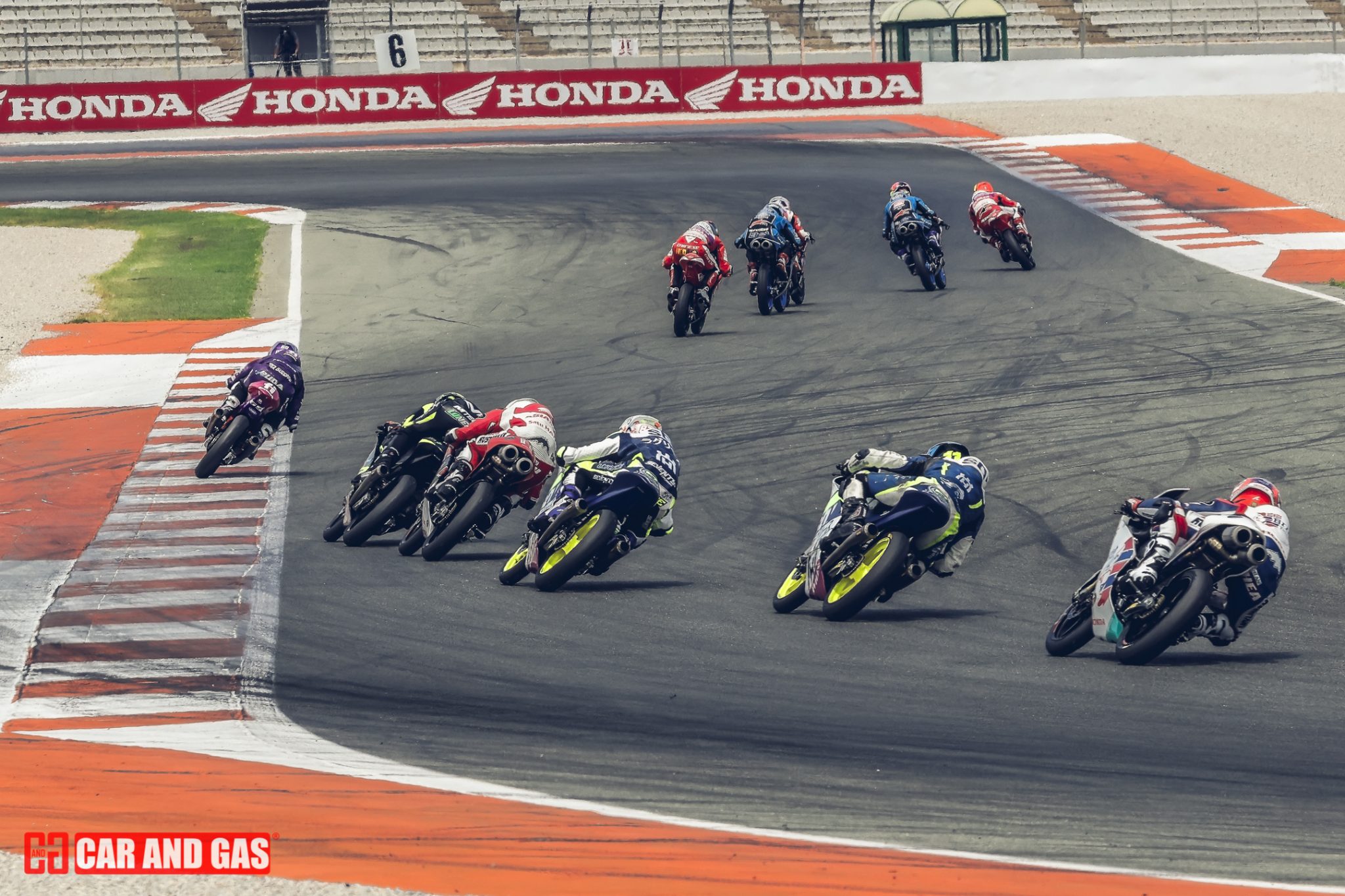 Turno para la segunda del JuniorGP, quinta del día. Existe el símil taurino de que no hay quinto malo, refiriéndose al quinto toro de una corrida y en este caso vaya si se cumplió. Rápida salida en la que Lunetta y Almansa consiguieron adelantar al poleman Esteban que se rehízo para tomar la delantera junto a Bartolini, Piqueras, Roulstone y Carraro cogiendo unos metros y librándose del monumental lío que vino en la segunda vuelta a la salida de la tan temida curva 4. Hasta cuatro pilotos se vieron involucrados en una caída que por suerte se quedó en un susto ya que por el punto y el momento pudo ser mucho peor.